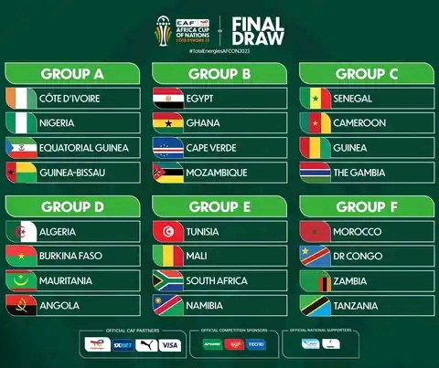 Les nations ont été réparties en quatre groupes de six équipes lors de ce tirage au sort. Dans le chapeau 1, on retrouvait le pays-hôte, la Côte d’Ivoire, aux côtés des favoris traditionnels tels que le Maroc, le Sénégal, la Tunisie, l’Algérie et l’Égypte. Le chapeau 2 regroupait également des prétendants redoutables, notamment le Nigéria, le Cameroun, le Mali, le Burkina Faso, le Ghana et la RD Congo.