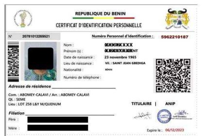 BÉNIN : La durée de validité du CIP passe de 2 à 5 ans