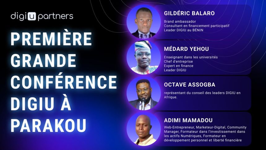 Sur le thème : «Devenez le champion des technologies d’IA et de Blockchain», ambassadeurs et entrepreneurs leaders de l’écosystème DIGIU échangent avec les populations de Parakou et environs. Le samedi 24 Février 2024 à Métropole Hôtel à partir de 10h, l’écosystème DIGIU, son bilan de 2023 et les objectifs de 2024 seront présentés aux personnes chanceuses qui feront le déplacement.