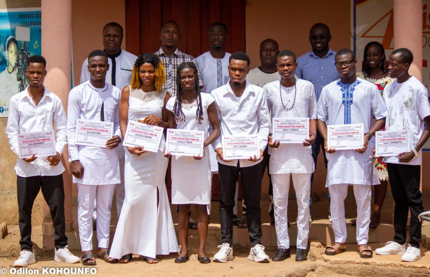Venus de Parakou, Glazoué, Kandi, Pèrèrè et N’Dali à prendre part à la phase 2 du projet, les étudiants ont été formés dans les techniques de base de conception d’affiche de tout genre, les prises de vue et d’images, le montage et l’usage des logiciels adaptés à chaque module. Et leur porte-parole adresse aux initiateurs, des mots de reconnaissance et d’engagement. « Nous tenons à remercier le PDG du Groupe de Presse DUCOIN INFOS et toute son équipe pour leur bravoure et l’accueil chaleureux qui nous a été réservé sans oublier les formateurs pour les efforts consentis afin de nous donner une formation de qualité. Durant ces trois semaines, nous avons appris les rouages de l’infographie et photographie et les contours du cadrage et de montage. Aujourd’hui, nous pouvons tous affirmer avec satisfaction que nous sortons d’ici avec beaucoup de connaissances intellectuelles dans nos différents modules de formation. Ce succès donnera une nouvelle impulsion à notre situation socio-économique et nous permettra d’apporter un plus à notre communauté » s’est exprimée Yasmine Kpassi, participante module Photographie-Infographie et porte-parole des récipiendaires.