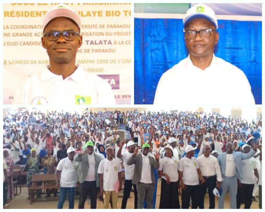 À l’ouverture de la campagne, le professeur Abdoulaye Dramane et Fatigba Holden ont fait de l’Université de Parakou le cœur de leur stratégie. Convaincus que la jeunesse estudiantine est décisive, ils ont mouillé le maillot pour mobiliser massivement les étudiants. Objectif affiché : faire comprendre l’enjeu du scrutin et pousser à une participation record en se basant sur le projet de société du duo WADAGNI TALATA. Dès l’entame, ils ont mis en place des brigades de sensibilisation sur le campus afin de faire comprendre aux étudiants le point fort du projet de société du duo WADAGNI-TALATA. Plus de 20 équipes d’étudiants formés ont sillonné les amphithéâtres et les résidences pendant deux semaines. Un stratégie mise en place afin que tous les étudiants aient l’information afin de faire le choix utile.