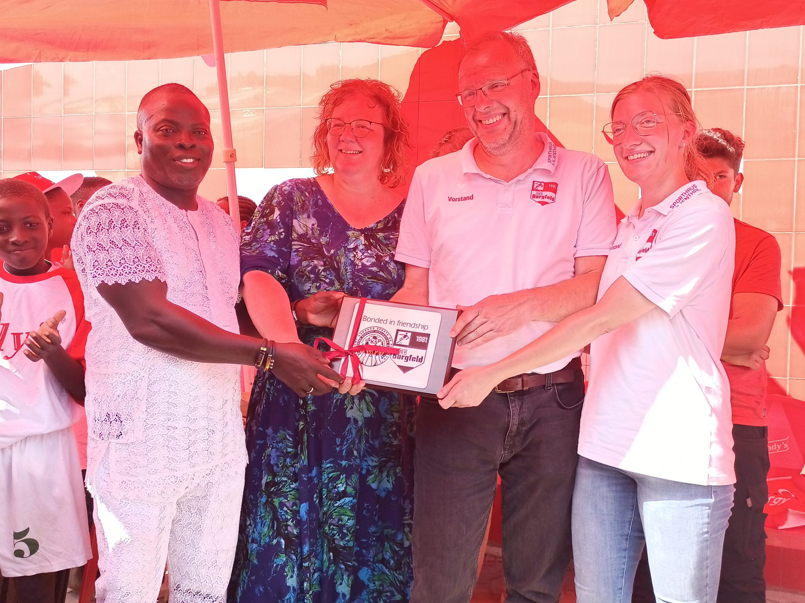Ce dimanche 22 octobre 2023, le promoteur du centre Nanzif Koffi Alias Kabongo, son épouse Katrin Meyer, les partenaires Cody’s et du centre allemand SC Borgfeld, les sages, élus, parents des apprenants et les acteurs sportifs de la ville de Parakou ont procédé à l’inauguration du logement. Désormais en dehors de son siège national et son stade en projet, le centre de formation Kabongo Sport de Parakou et de Kandi dispose de son campement où est offert aux enfants filles et garçons, le confort qu’il faut pour une bonne condition d’apprentissage.