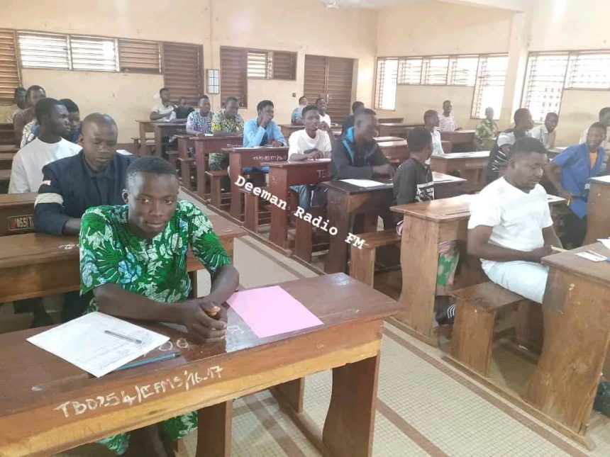 Dans sa volonté de renforcer le sous-secteur de l’Enseignement et de Formation Techniques et Professionnels (EFTP), le Gouvernement béninois à travers le Ministère des Enseignements Secondaire, Technique et de la Formation Professionnelle (MESTFP), en collaboration avec l’Agence de Développement de l’Enseignement Technique (ADET), organise le recrutement d’une nouvelle cohorte de 2600 apprentis candidats pour leur entrée dans le dispositif de formation par apprentissage dual aboutissant au Certificat de Qualification Professionnelle (CQP), sur financement du projet Formation Professionnelle et Entrepreneuriat pour l’Emploi (FP2E). C’est dans ce cadre que ce samedi 8 novembre 2025, l’Ecole de Formation Médico-Sociale (EFMS) de Parakou a accueilli le lancement officiel du test de niveau qui consacrera le recrutement desdits apprentis. Ce test, faut-il le rappeler est organisé conjointement par la DESTFP et le FODEFCA à l’échelle nationale. Cet événement d’envergure a rassemblé 202 candidats répartis dans deux centres de composition dont l’EFMS de Parakou et LTP Ina pour ce qui concerne le département du Borgou, en présence du Directeur Départemental des Enseignements Secondaire Technique et de la Formation Professionnelle (DDESTFP) Mahoutin Antonin DJOSSOU, du Directeur EFMS Claude Homagnon AMIGBATIN et le corps enseignant. Il est à préciser que les épreuves se sont déroulées dans d’excellentes conditions, comme en témoigne le DDESTFP du Borgou <<c’est avec beaucoup de satisfaction parce que tout se passe très bien et c’est vraiment merveilleux et également la même chose à Ina>>