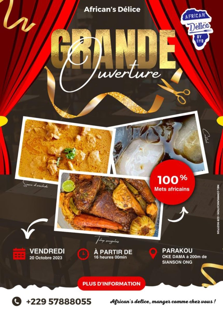 Ce vendredi 20 octobre 2023, à partir de 16h, « Africain’s Délice » ouvre ses portes à Okedama à 200m de Sian-Son Ong. Le choix des repas, l’emplacement du lieu, le personnel, tout est choisi en tenant compte de vos besoins.